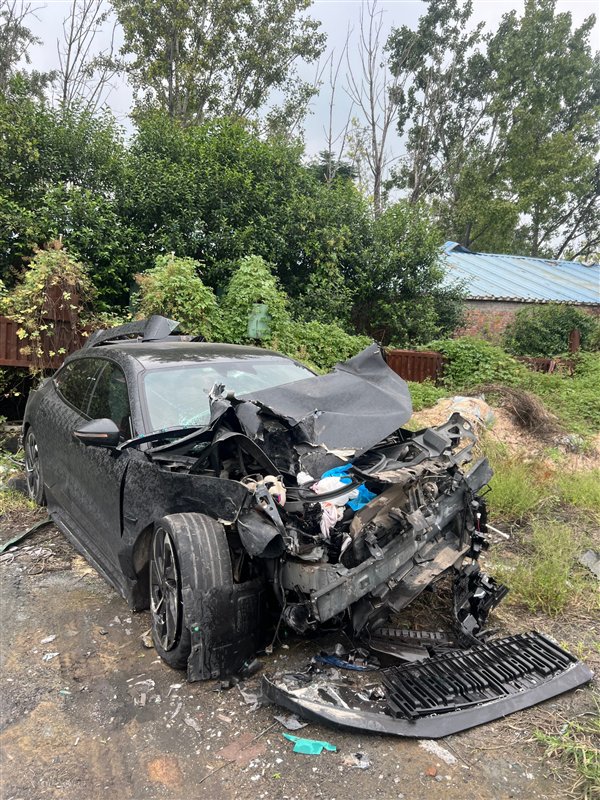 从事故后的车损照片来看,这辆极氪001前脸和尾部均严重损毁,尾部更是全部被撕裂。但车辆的乘员舱基本保持完整,没有明显的变形和破损,电池也没有热失控。