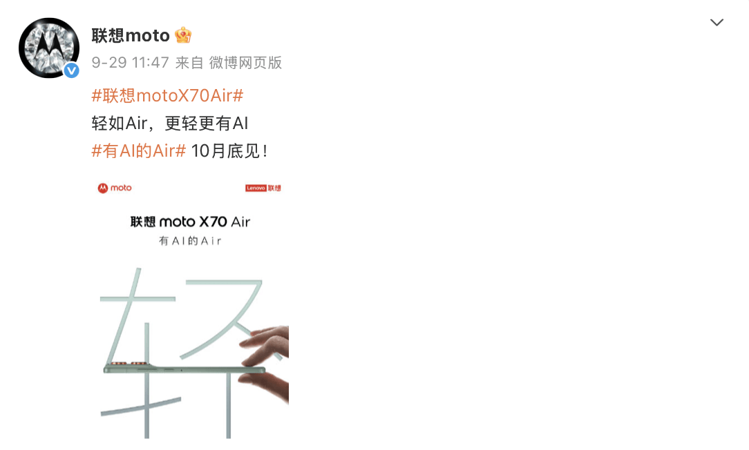 据此前联想官方发布的信息,10月底,联想moto X70 Air等AI产品将与大家见面,相信很快会有更多信息宣布,此番有了代言人的加持,更加值得期待。