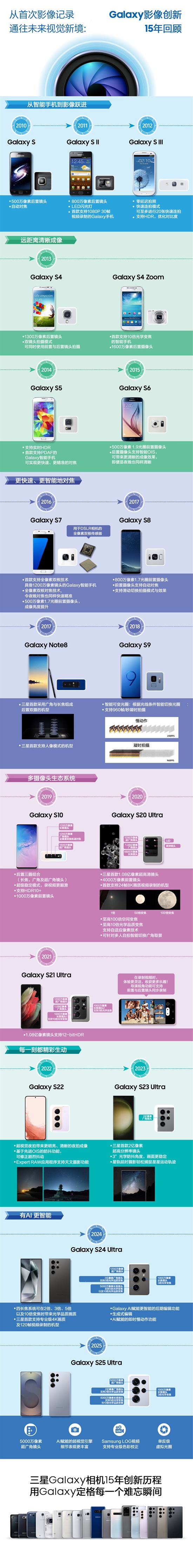“始终先于潮流”,过去15年来,三星一直走在行业前沿,不断推动移动摄影迈向新高度,并开创了Galaxy影像技术的全新纪元。下面将通过长图回顾三星这些年来在移动影像领域的创新发展历程。