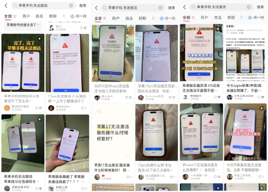 事实上,自10月13日晚开始,就有大量用户反映iPhone17及iPhone 17 Pro Max存在无法激活的问题。
