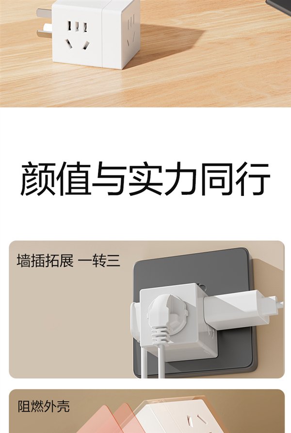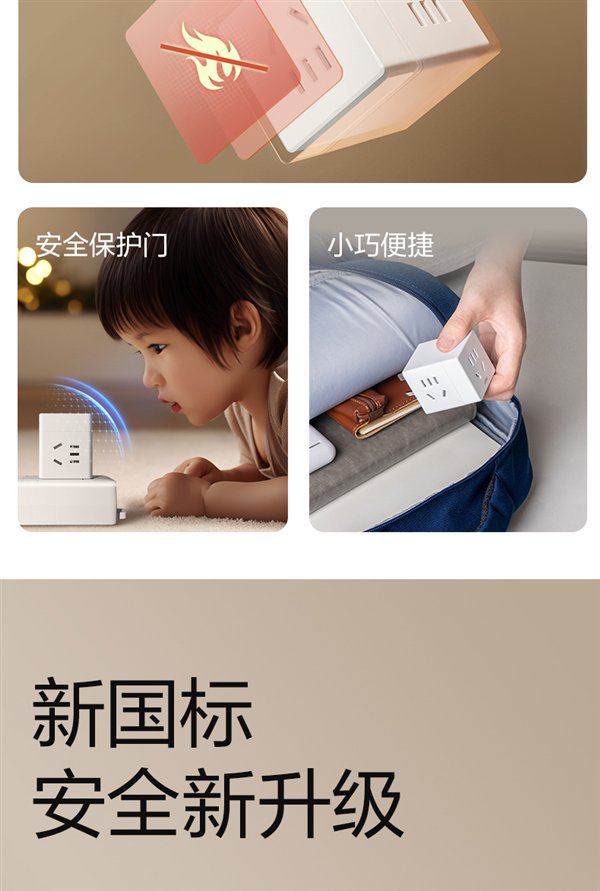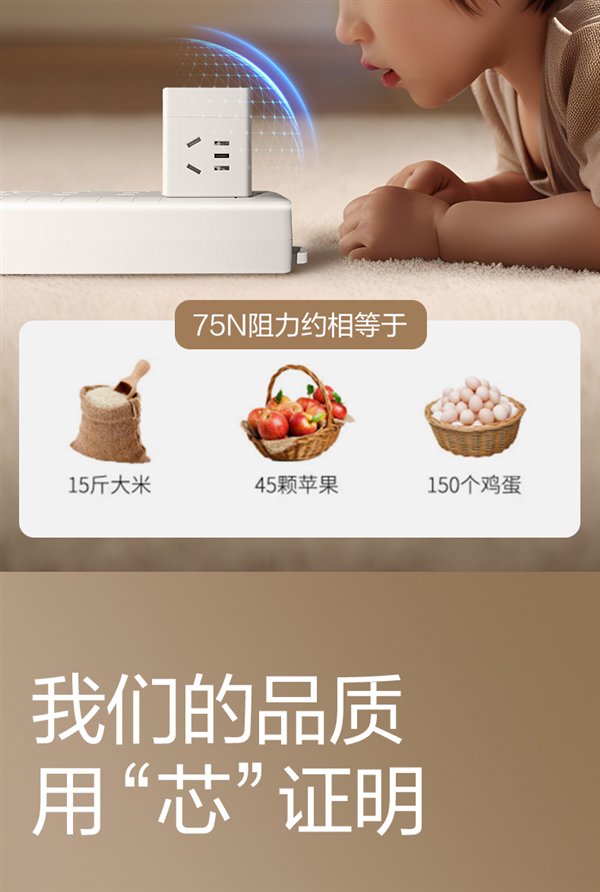官方质保 3 年,外形小巧功能性强,带有防触保护门,支持新国标 + 3C 认证,多重保护,用电更安心。