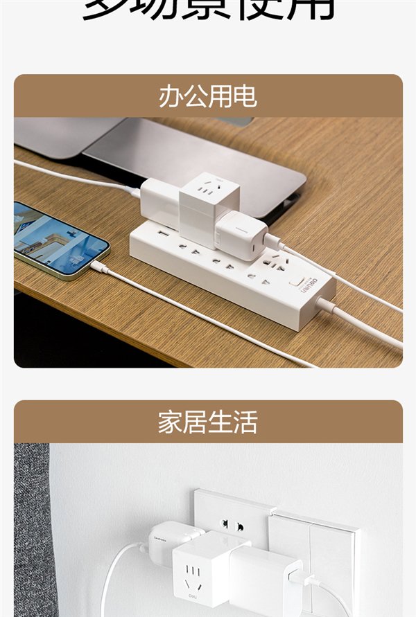 经常出差的小伙伴也可以在包里备上一个,宾馆插座不够时可以用得上,,一插转多孔,轻松解决插座不够用!