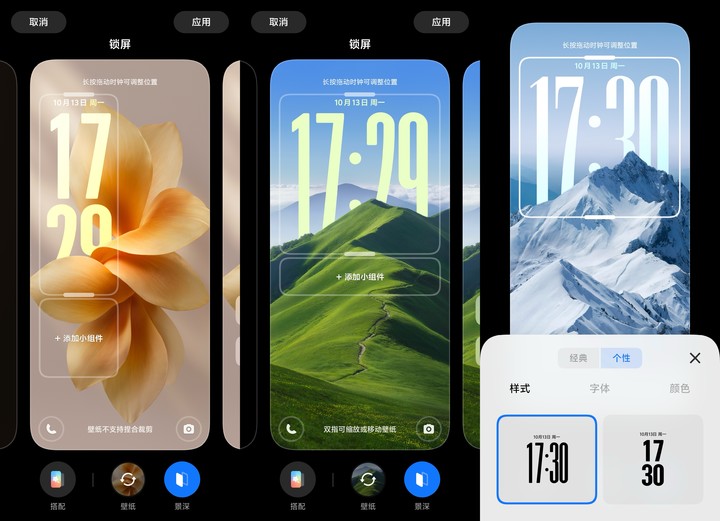 此外,对于之前被诟病颇多的锁屏个性化,OriginOS 也进行了一轮紧急补课。在 X300 Pro 上,各种景深时钟、光栅锁屏以及 live 壁纸的加入,总算给万年不变的 Origin 锁屏带来了更多的活力: