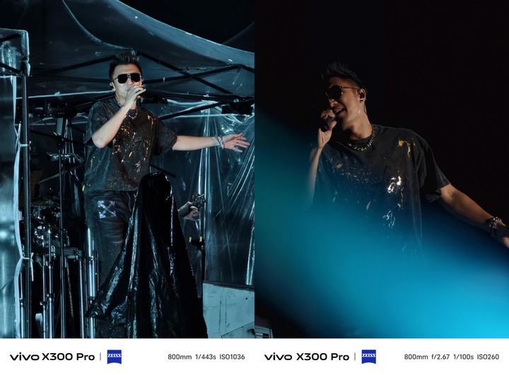 一颗 85mm 的两亿像素长焦,转接上 vivo 和蔡司联名的 2.35x 增距镜之后,就可以秒变能够揣兜里的 200mm「小炮」,实现手机这个体积下想都不敢想的 200、400 甚至 800mm 照片,具体到实际应用场景上,就是在演唱会看台也能拍出媲美内场前排的照片: