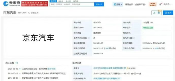 目前部分商标已完成注册,这意味着京东在汽车业务的品牌建设与合规布局上已进入实质性阶段,为后续业务拓展奠定基础。