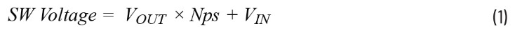 额定开关电压对于非隔离型开关稳压器很重要。然而,使用此类转换器时需要更加小心,因为开关节点的电压等于输出电压乘以变压器匝数比加上最大输入电压。此外还要注意漏感尖峰,因此设计需要确保当所有这些情况叠加在一起时,开关电压不会超过额定值。