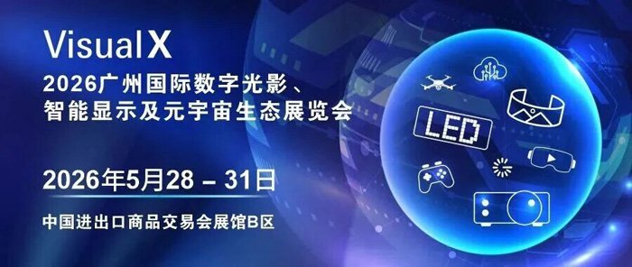 当数字化革命以燎原之势重构全球产业版图,在各行业不断颠覆创新,积极寻找破局与跃升之际, 广州国际数字光影、智能显示及元宇宙生态展览会 (Visual X)(下称“光影显示元宇宙展”)应势而来,将于2026年5月28-31日在中国进出口商品交易会展馆B区盛大启幕!