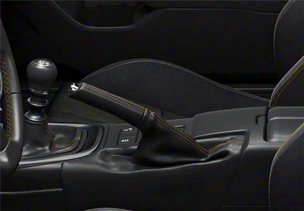 新车内部同样为驾驶而生,配有机械手刹和Recaro高性能座椅,其座椅、方向盘、变速挡杆均配有黑色和对比鲜明的黄色缝线,可激发驾驶欲望。