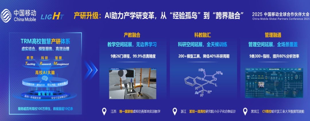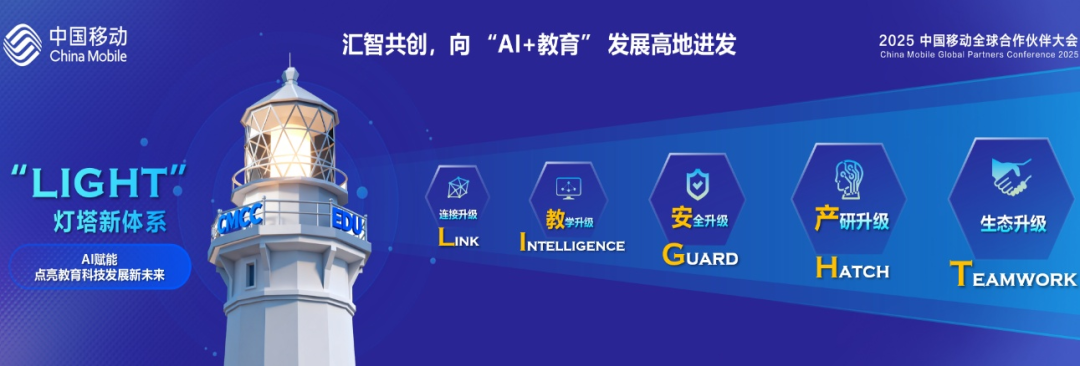 在科技迅猛发展的全球背景下,近年来国务院、教育部以及各级地方政府密集出台了一系列政策措施,以推动“人工智能+教育的深度融合。就在今年8月,“人工智能+”六大行动提出要把人工智能融入教育教学全要素、全过程;教育部《教育强国建设规划纲要》也明确要求促进人工智能助力教育变革。“LIGHT”灯塔新体系,正是中国移动全面拥抱人工智能,积极响应并贯彻落实国家关于推动人工智能与教育深度融合决策部署的具体实践。