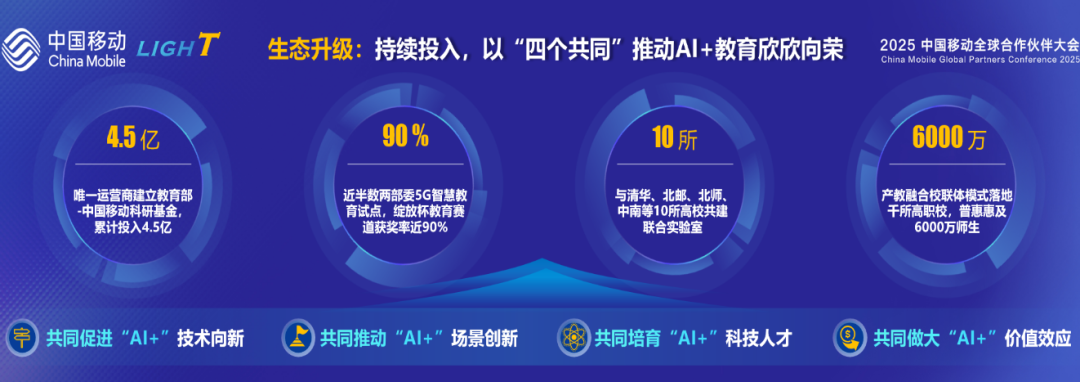 依托最新发布的“LIGHT”灯塔新体系及其在未来的持续深化应用,中国移动有望进一步释放AI与教育融合的倍增效能,深度赋能多元教育场景,为构建下一个泛在、灵活、智能高效的高质量教育体系注入核心动力。