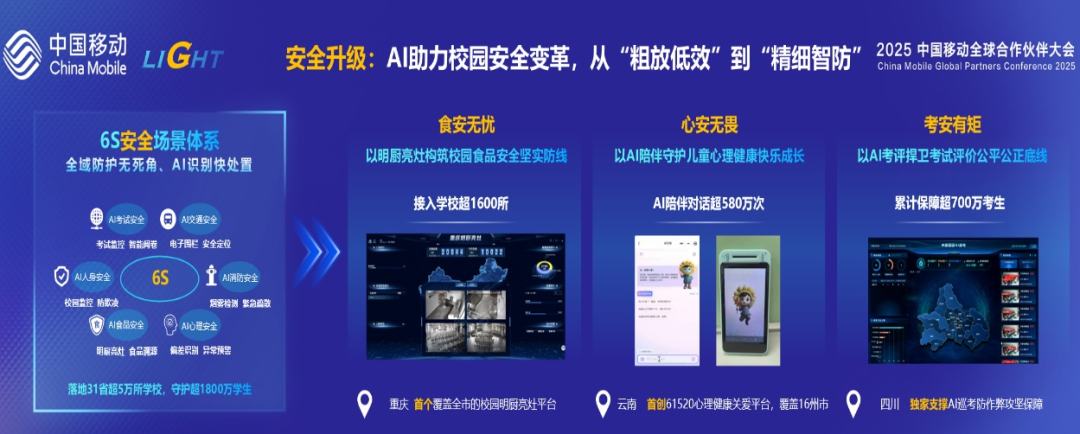 在安全升级上,打造出从交通安全、人身安全、消防安全、食品安全、心理安全及考试安全的6S安全场景体系,助力校园安全从“粗放低效”到“精细智防”变革。