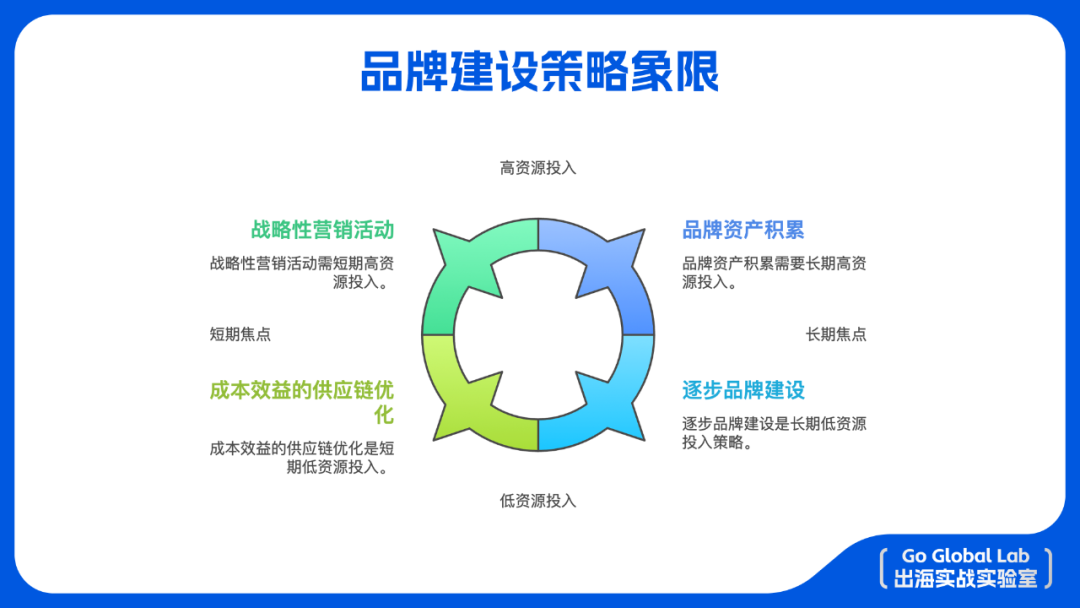 财务分配的调整: 品牌建设并不昂贵。中国商家在国内投流的资金,拿出其中一部分(如30%-60%)投入海外品牌建设,“足够做一个小牌子卖货”,实现年销售三五百万美金是有机会的。