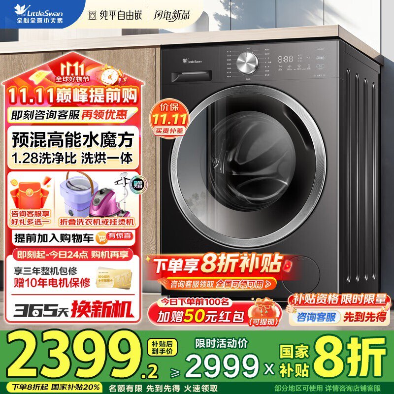 小天鹅10kg水魔方滚筒洗衣机低至2029元