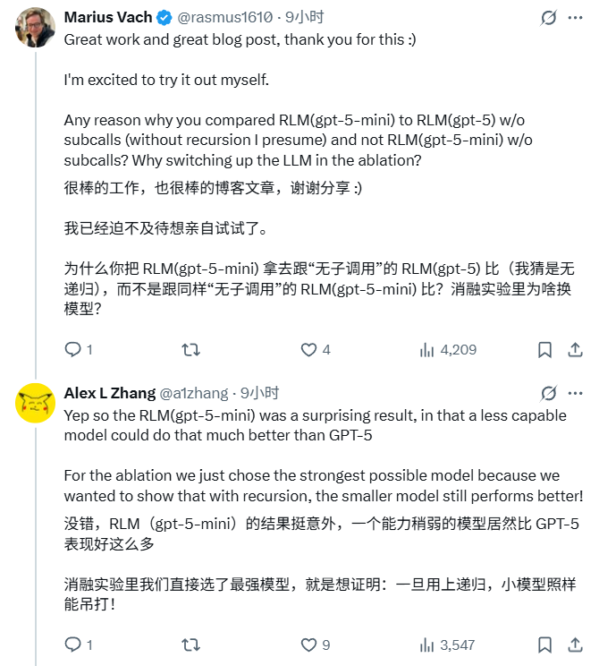 博客文章:https://alexzhang13.github.io/blog/2025/rlm/