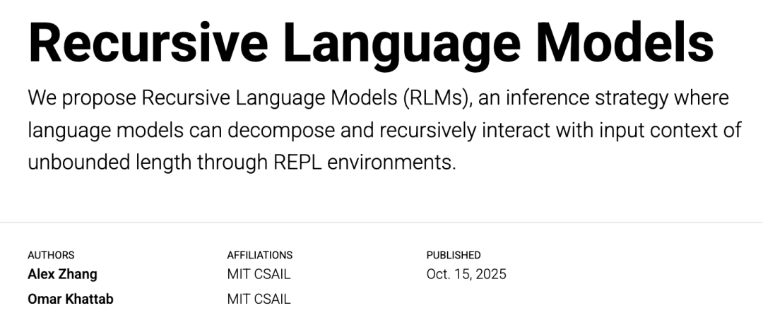 博客作者为 MIT CSAIL 的 Alex Zhang 和 Omar Khattab。