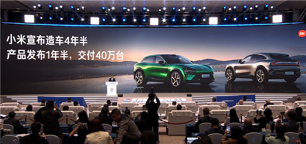 雷军表示,小米宣布造车四年半时间,产品上市也有一年半的时间,截止目前为止,我们交付了大概40万辆汽车。