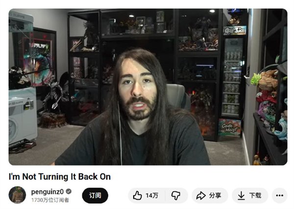快科技10月16日消息,据媒体报道,知名Youtube游戏主播MoistCr1TiKaL近日宣布,将关闭自己YouTube和Twitch账号的盈利功能。