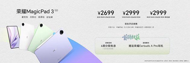 荣耀MagicPad3 Pro拥有浮光金、月影白和星空灰等三款配色,将于10月23日开启全渠道首销,首销优惠价3799元起。