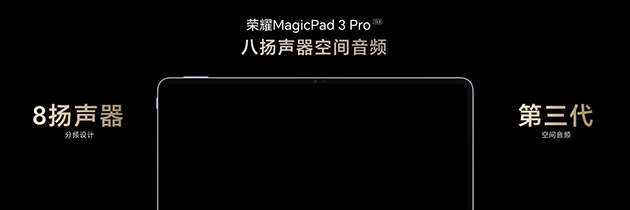 荣耀MagicPad3 Pro采用8扬声器设计,升级第三代空间音频技术,让声场更加宽广立体;业界最大12450mAh青海湖电池,最高支持80W有线超级快充,告别电量焦虑;采用自研双擎天线,可实现500米WiFi超远距离覆盖。