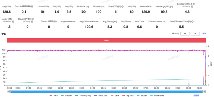 在实际性能体验中,以《王者荣耀》最高画质 120FPS 测试整局,平均帧率几乎满帧运行,平均功耗约为2.78W左右。整局游戏体验下来,机身温度保持温热状态,充分兼顾性能与舒适度。