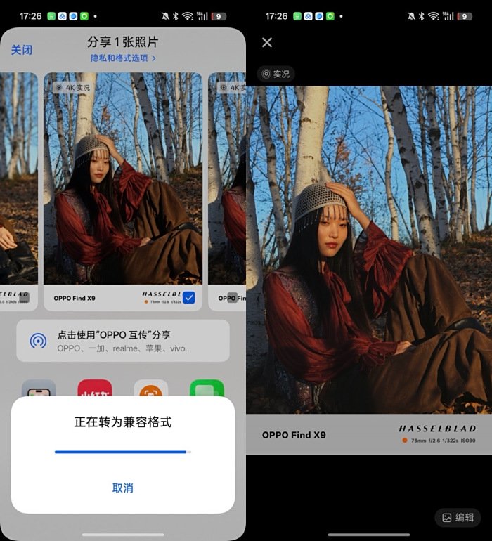 在影像功能方面,这次 OPPO 带来了4K 超清实况照片直出功能,4K 超清实况照片功能以 4:3 黄金比例直出,无任何裁切。依托 全链路 ProXDR 显示,实况照片的过程帧与封面帧均具备 HDR 效果,光影层次更丰富、细节表现更立体,视觉冲击力更强。