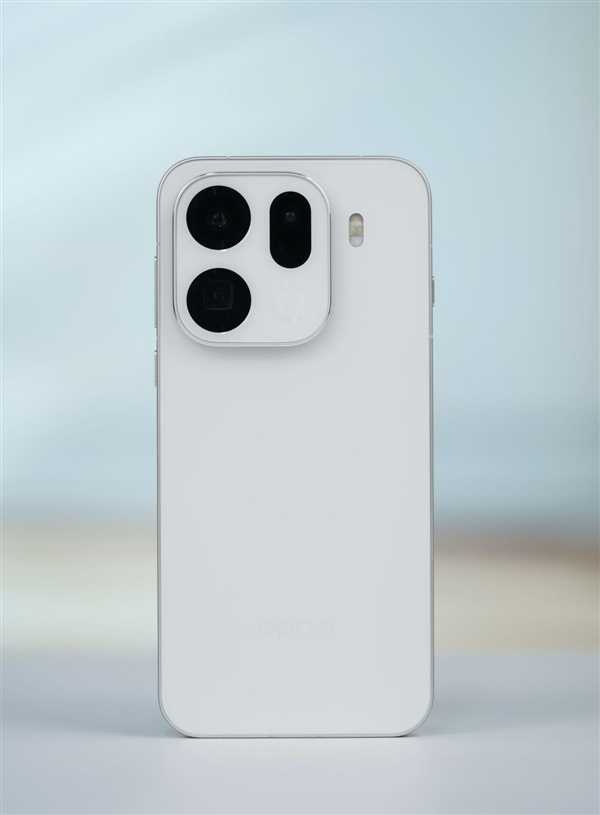 OPPO Find X9 Pro共有绒砂钛、追光红、霜白三款配色,我们手上的是霜白版本。
