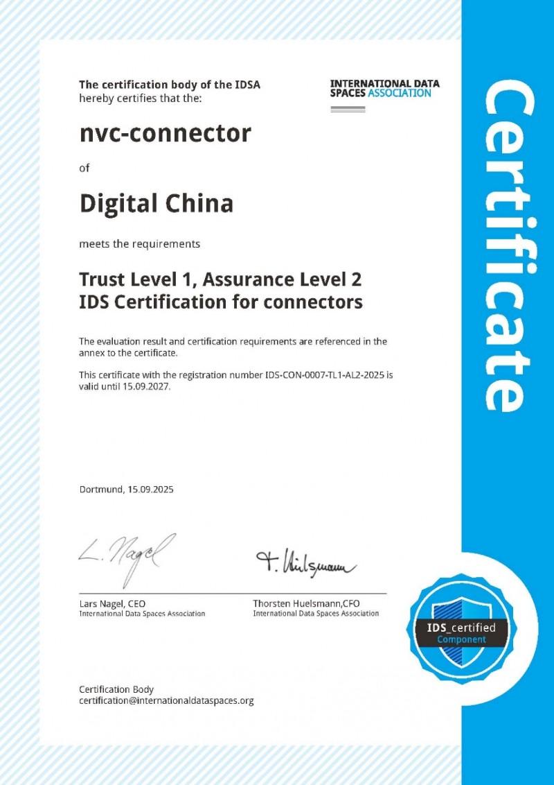 近日,神州数码磐云数据空间连接器(nvc-connector)顺利通过下一代互联网国家工程中心的评估,获得了国际数据空间(IDS)组件认证。该成果不仅标志着产品在技术合规性、