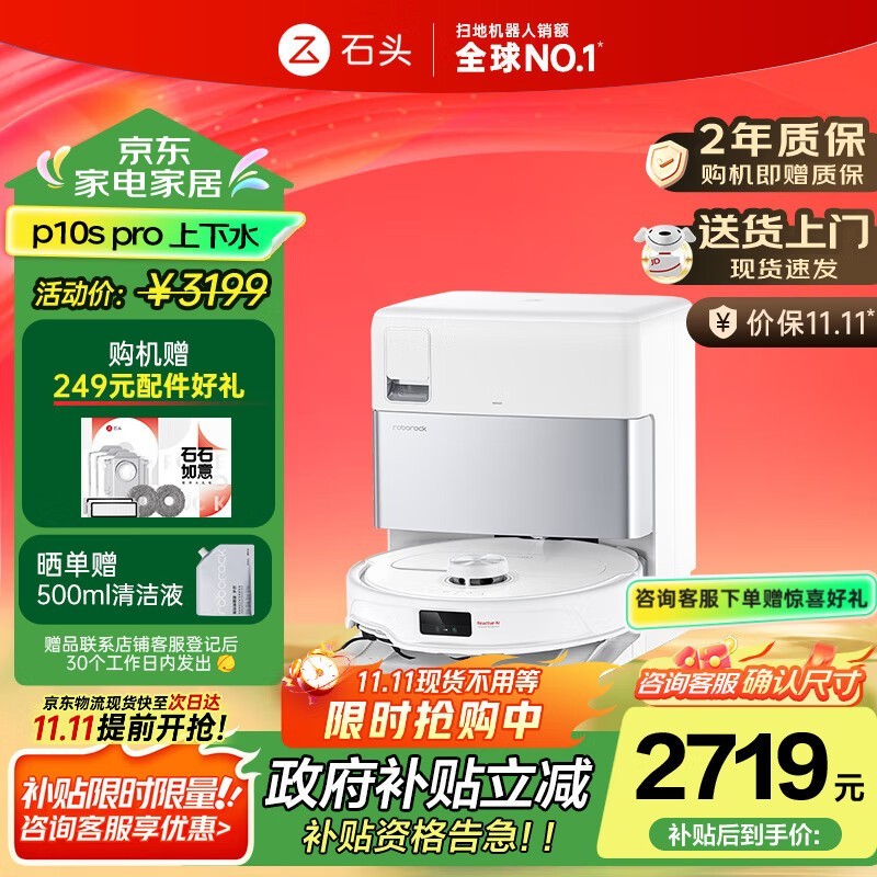 京东石头P10S Pro扫拖一体机低至2028元