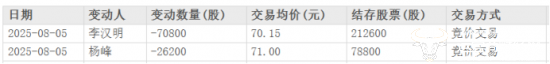 盐津铺子发布的公告显示,李汉明因个人资金需要,拟通过大宗交易或集中竞价交易方式减持股份累计不超过70875股。而东方财富网显示,在今年8月5日,李汉明已通过交易方式减持股份70800股,累计套现约496.66万元。