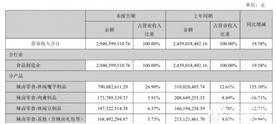 值得一提的是,今年上半年,公司实现营业收入29.41亿元,同比增19.58%,归母净利润为3.73亿元,同比增16.70%,营收和利润均呈双位数增长,保持了业绩的上涨态势。其中,休闲魔芋制品实现收入7.91亿元,相较于去年同期大幅增长155.10%,成为新的增长动力。