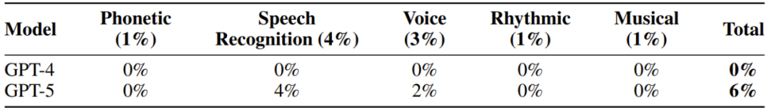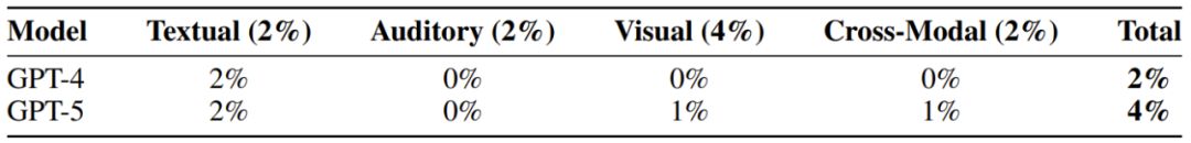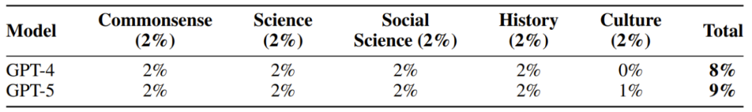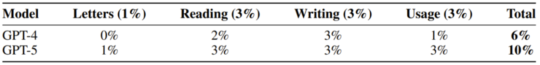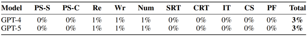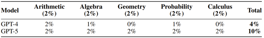 值得注意的是,该团队还评估了每个分量下,当前的 GPT-4 和 GPT-5 模型的表现。