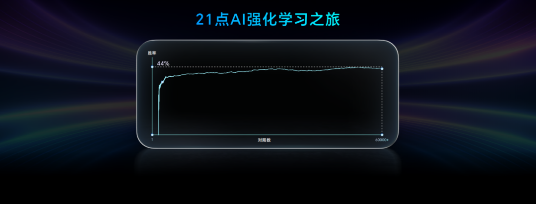 在实际应用中,荣耀AI的自主进化能力已得到充分验证。发布会上,通过演示AI玩“21点游戏”,就很好的展现了荣耀的端侧AI能够让手机在短时间内学会复杂的棋牌游戏,从0到44%提升游戏胜率,充分体现了AI在自主学习、自主强化能力方面的突破。