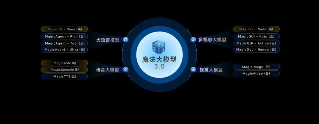 在技术架构层面,荣耀魔法大模型3.0采用端云协同设计。既有MagicLM-Nano端侧大语言模型,支持更快速、更安全地处理端侧用户敏感信息;也有面向Agent的MagicAgent Tool、Plan、Ultra三款云端模型,专注于复杂意图理解与任务规划。这一架构在实现强大AI能力的同时,也深度融入了荣耀的隐私保护理念。