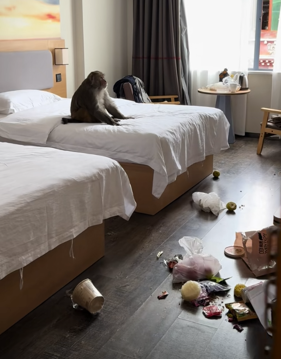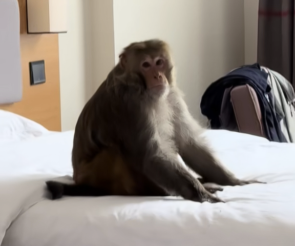 近日有网友发布视频称,自己在西藏旅游,入住酒店放好随身物品后就出门游玩了,然而回来后一推开门,发现一直野猴子端坐在床上。