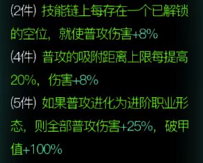 套装搭配魔弦时,通过长链调节杀意输出,与套装效果协同良好,显著提升伤害,适合过渡阶段使用。建议将套装全部强化至+5,其余部位装备可随意搭配。
