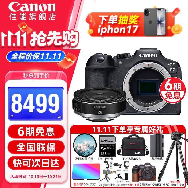 佳能R7微单套餐二直降,到手10399元