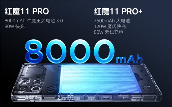 红魔11 Pro系列搭载ICE魔冷散热系统,使用涡轮增压风扇驭风4.0、4D冰阶VC、液态金属,高性能持久稳定输出;红魔11 Pro+还配置脉动水冷引擎,将主机级水冷浓缩进手机毫米级空间,AI服务器同款氟化液在陶瓷微泵推动下循环流动,快速带走热量。红魔11 Pro内置8000mAh第三代牛魔王大电池,支持80W快充,续航无忧;红魔11 Pro+内置7500mAh电池,支持120W魔闪快充、80W无线充电。红魔11 Pro搭载REDMAGIC OS 11,系统动画操作更流畅,支持AI日常圈图、AI帮写,更便捷,支持AI游戏圈搜、AI战术教练,游戏更简单;红魔姬Mora带来全新国风皮肤光羽霓裳,陪看、陪玩、陪聊,支持游戏、通话、浮窗等场景。