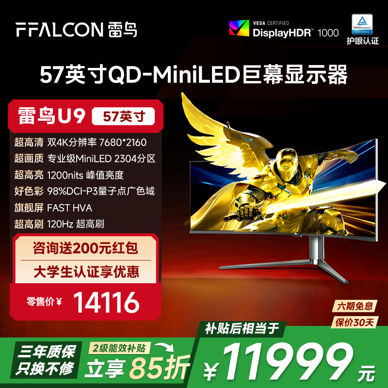 雷鸟57英寸U9显示器活动价低至11989元