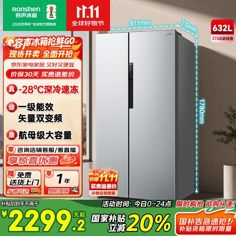 容声 632L 风冷对开门冰箱,低至 1689.1 元