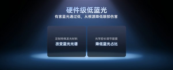 硬件级低蓝光——定制X3发光材料,从源头减少有害蓝光,再加一层光学腔长调节膜精准过滤,不偏色、不发黄。