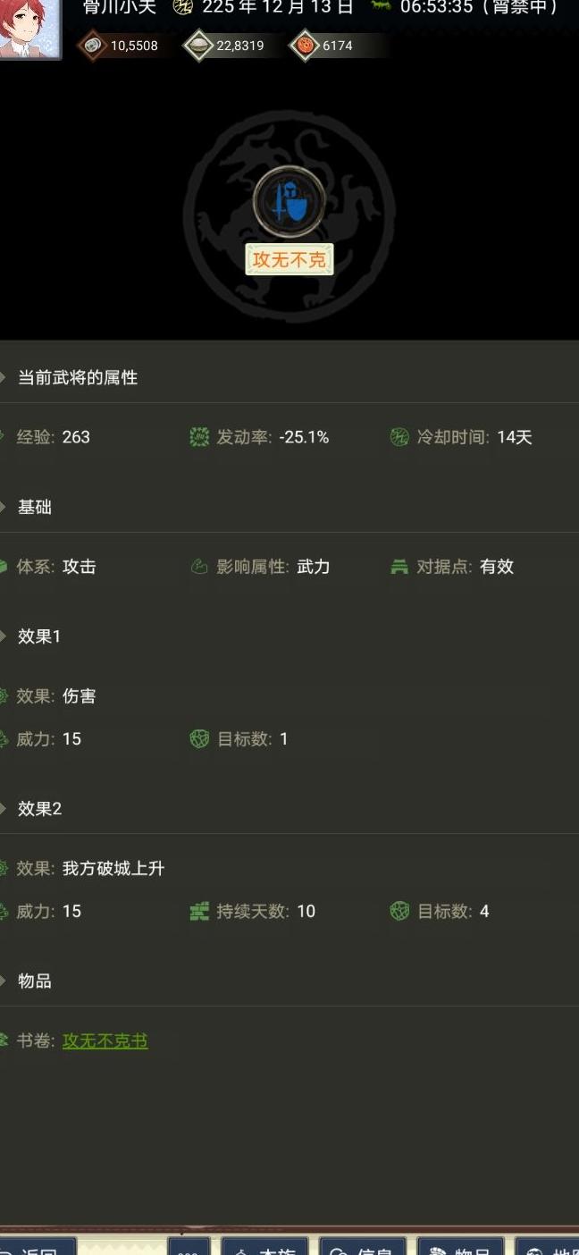 副将增益特性包括:神将(继承关羽血脉,提升25%攻防能力,优先选择);求心(降低队友士气流失60%);奏乐(每十日提升8点士气);诗韵(击败敌人后提升队友士气);屯田(减少40%粮草消耗)。