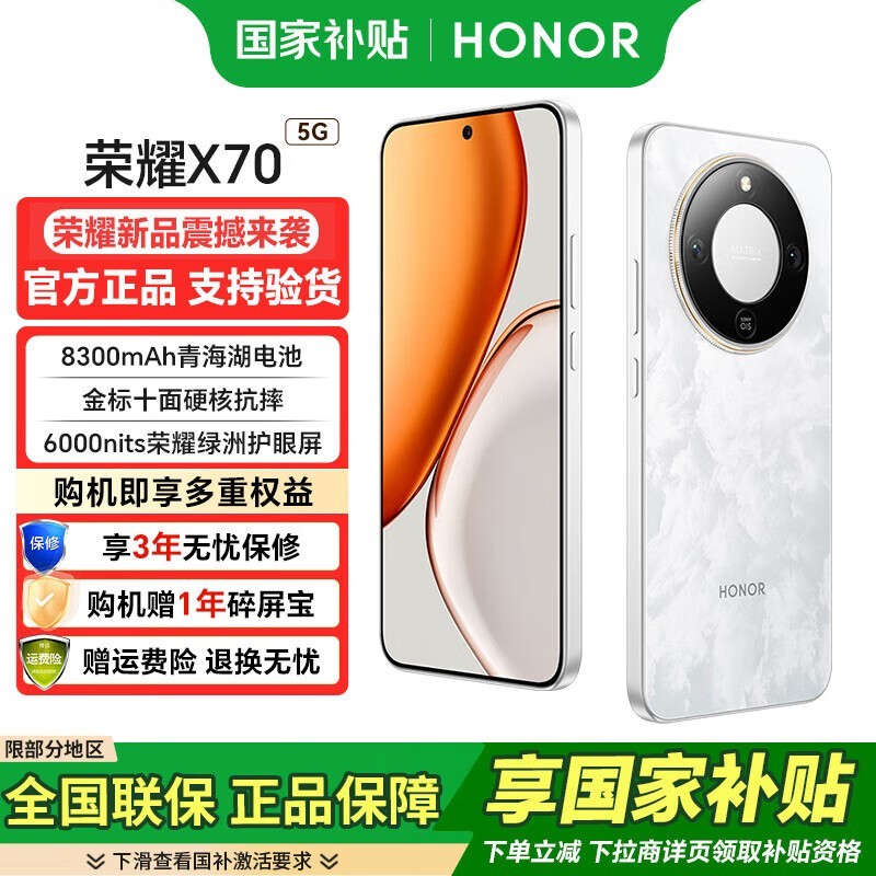 荣耀X70 5G手机月影白1339元