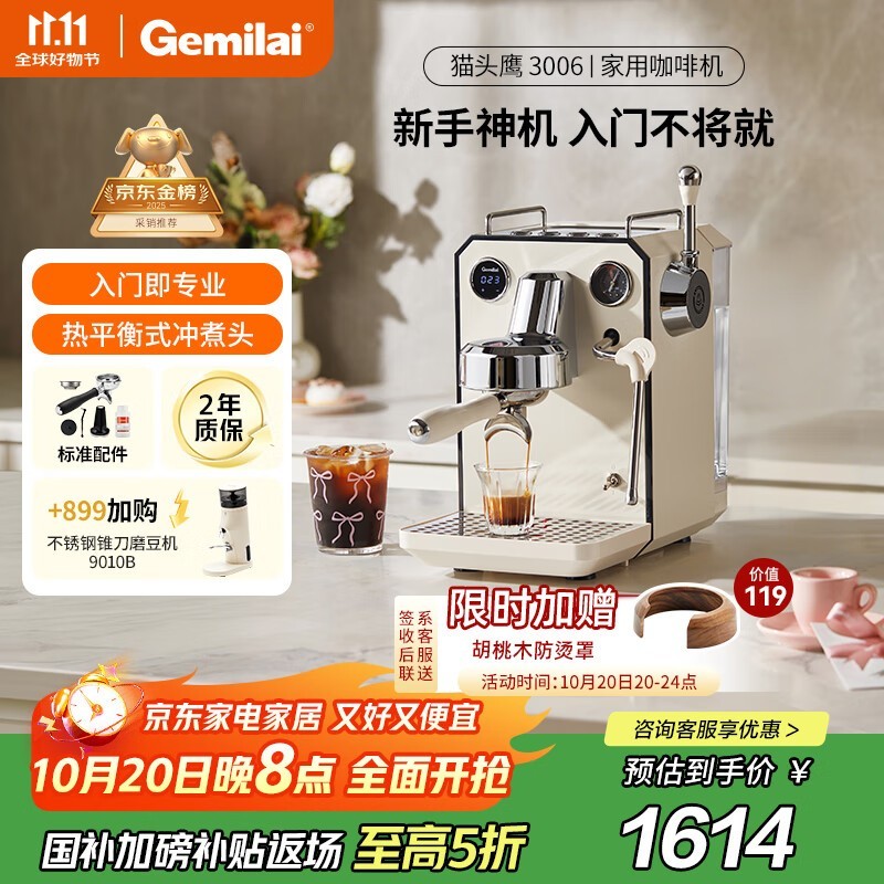 格米莱G3006象牙白咖啡机优惠低至1401元