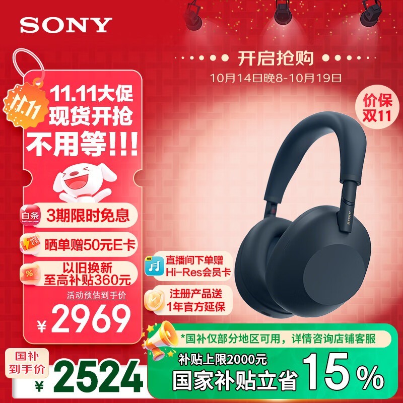 索尼WH - 1000XM6深夜蓝耳机低至2491元