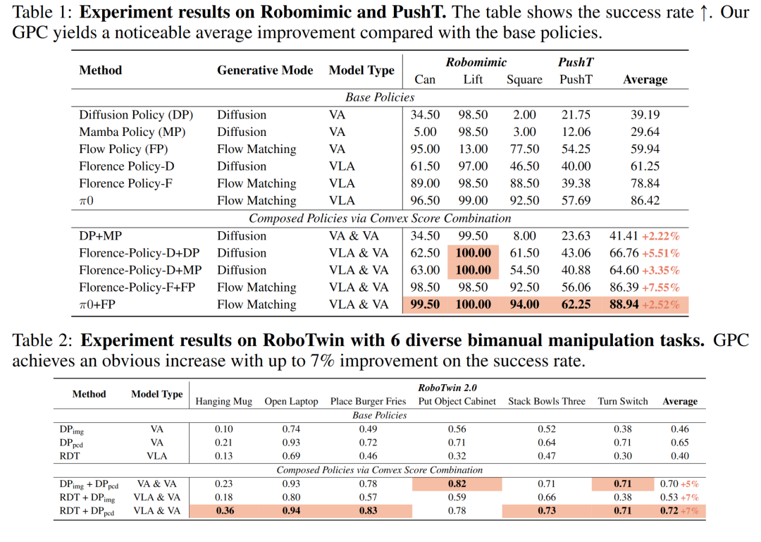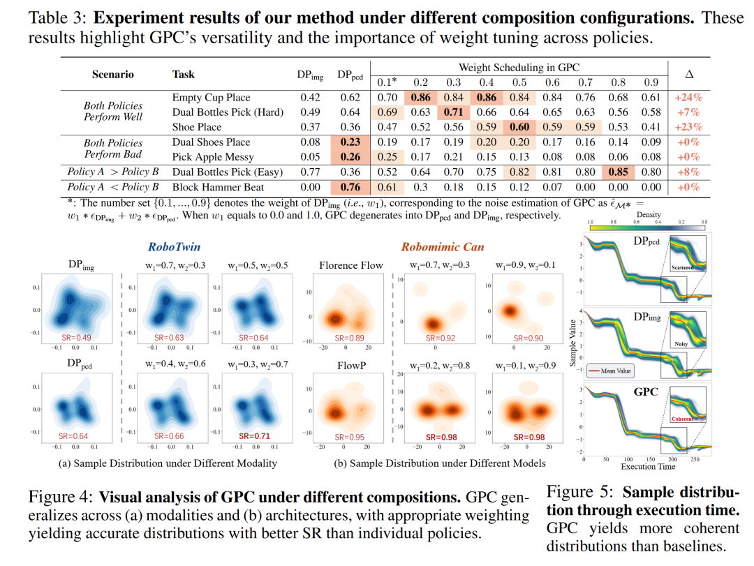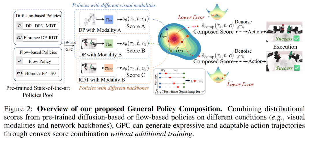 GPC 的通用性建立在其独特的分数组合机制上,使其能够跨越策略架构和输入模态进行灵活组合: