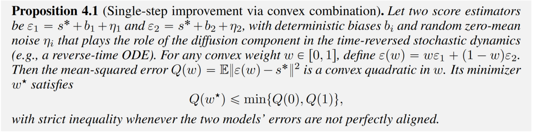 功能层面的提升(Functional-Level Improvement):研究团队证明,对多个预训练策略的决策分数(distributional scores)进行凸组合(convex combination),能够生成一个在单步上具有更低误差的组合分数,它比任何一个单一策略的分数都要更精确。