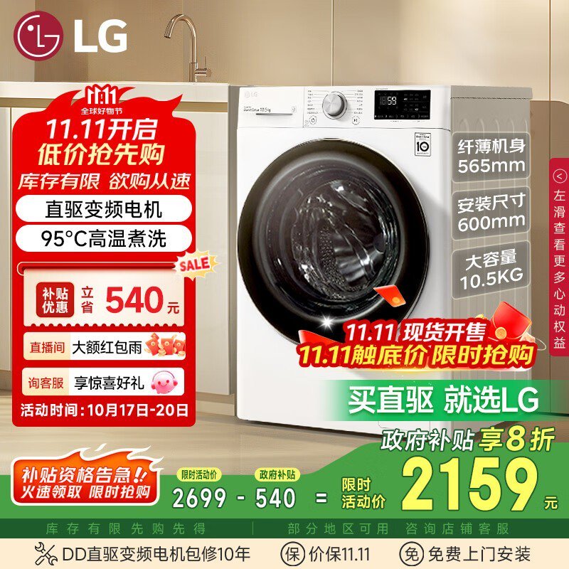 LG纤慧系列洗衣机直降,到手仅1943元
