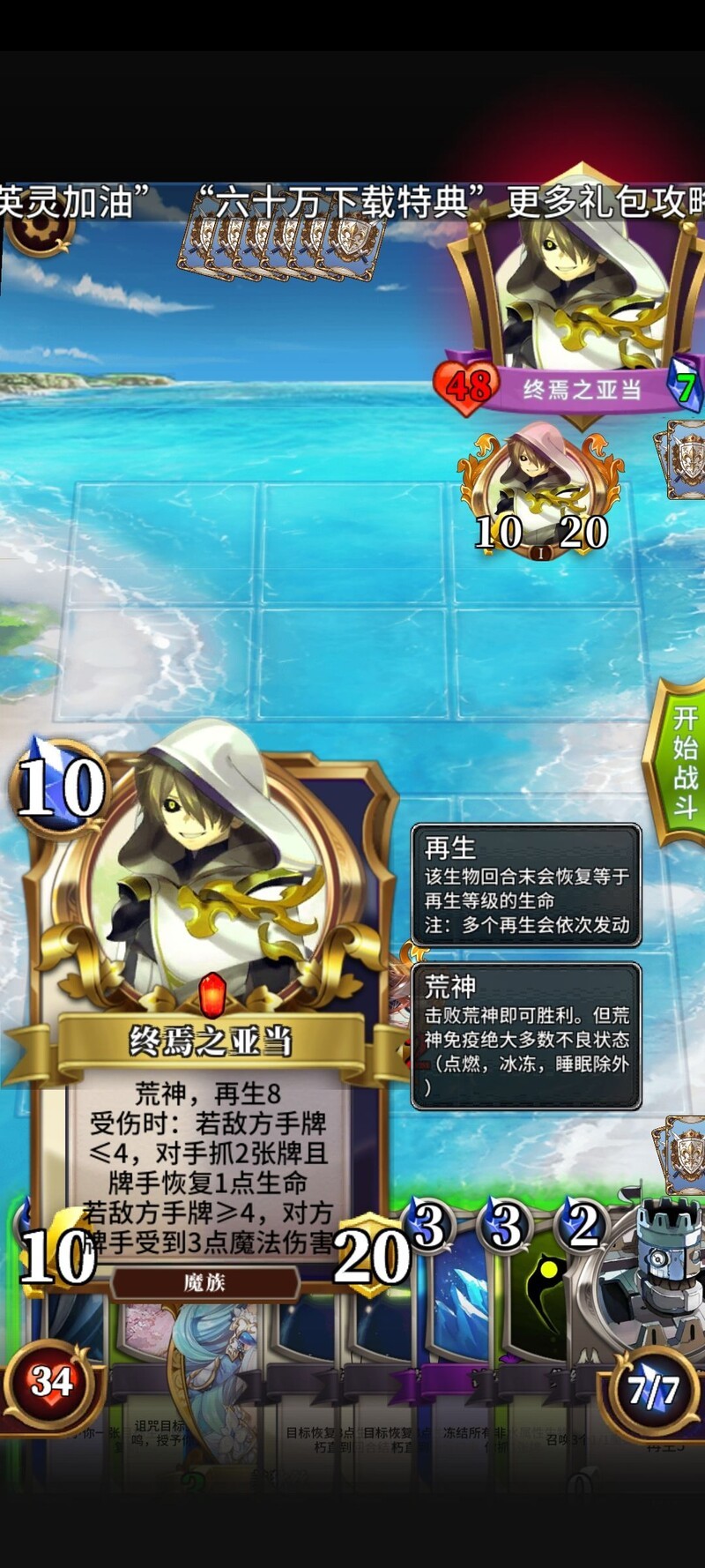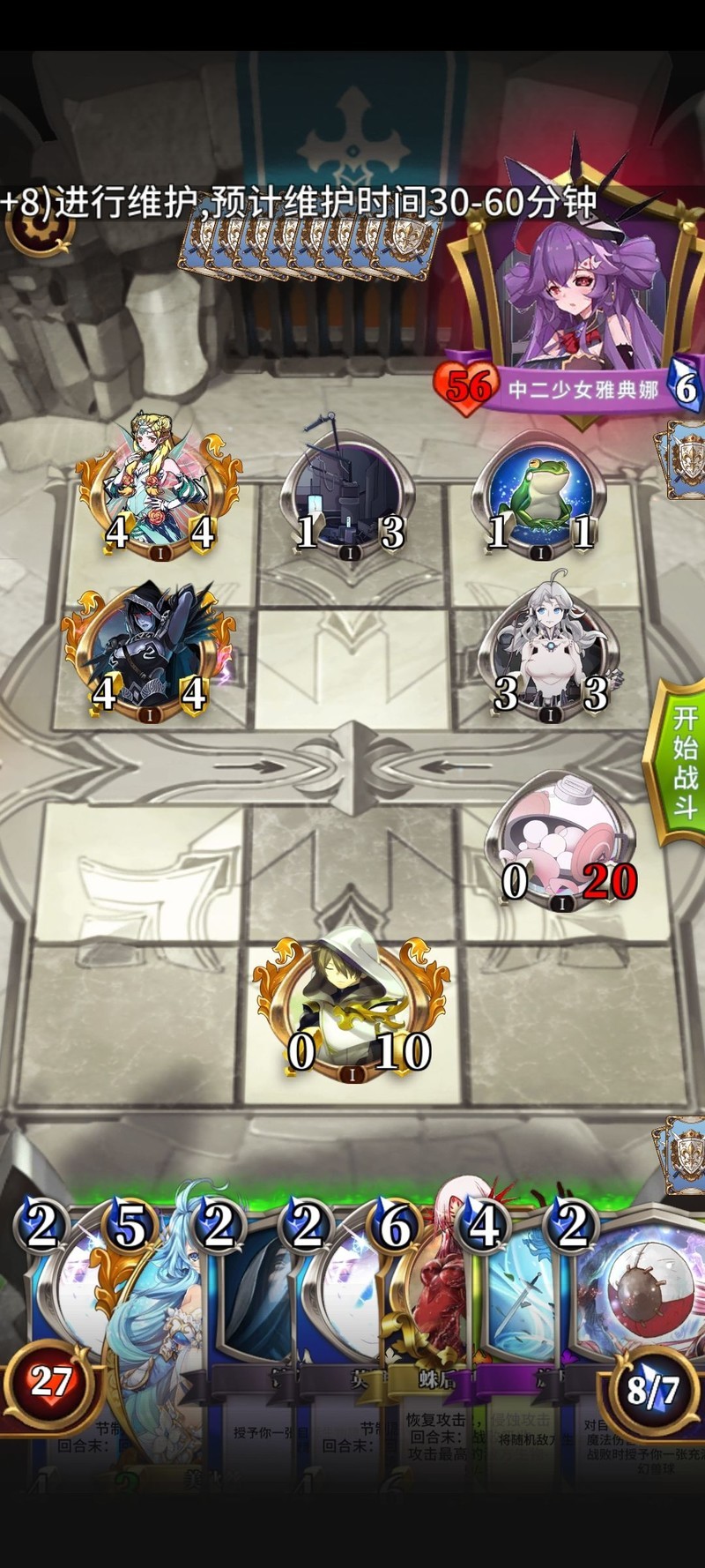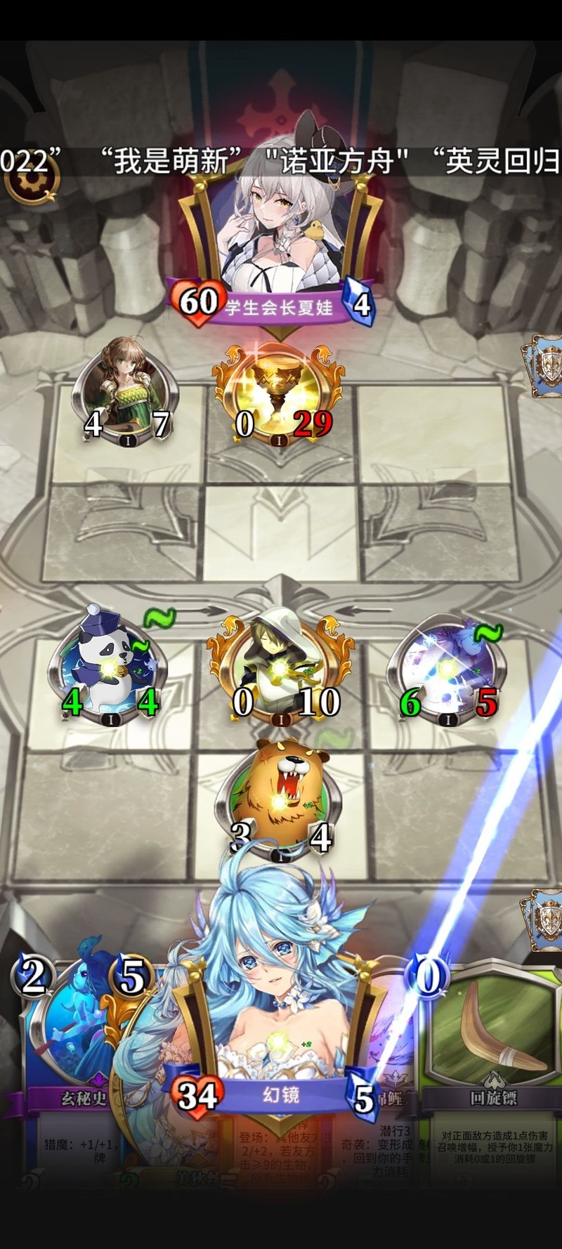 对方出牌固定且顺序明确,可尝试用天锁抢占位置。注意对面的0030圣杯,复制后即可获得一个无召唤能力的强力坦克。搭配冰冻、封印、变形、侵蚀与幻影效果,稳住防线清理小兵。但需在第10回合前清除前两个群山恐怖,否则蜘蛛子+2登场后局势将难以控制。