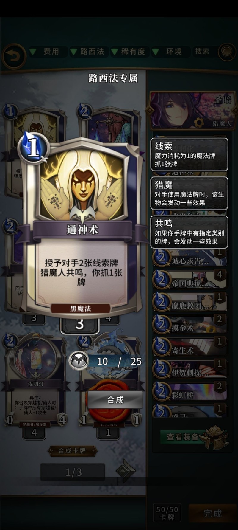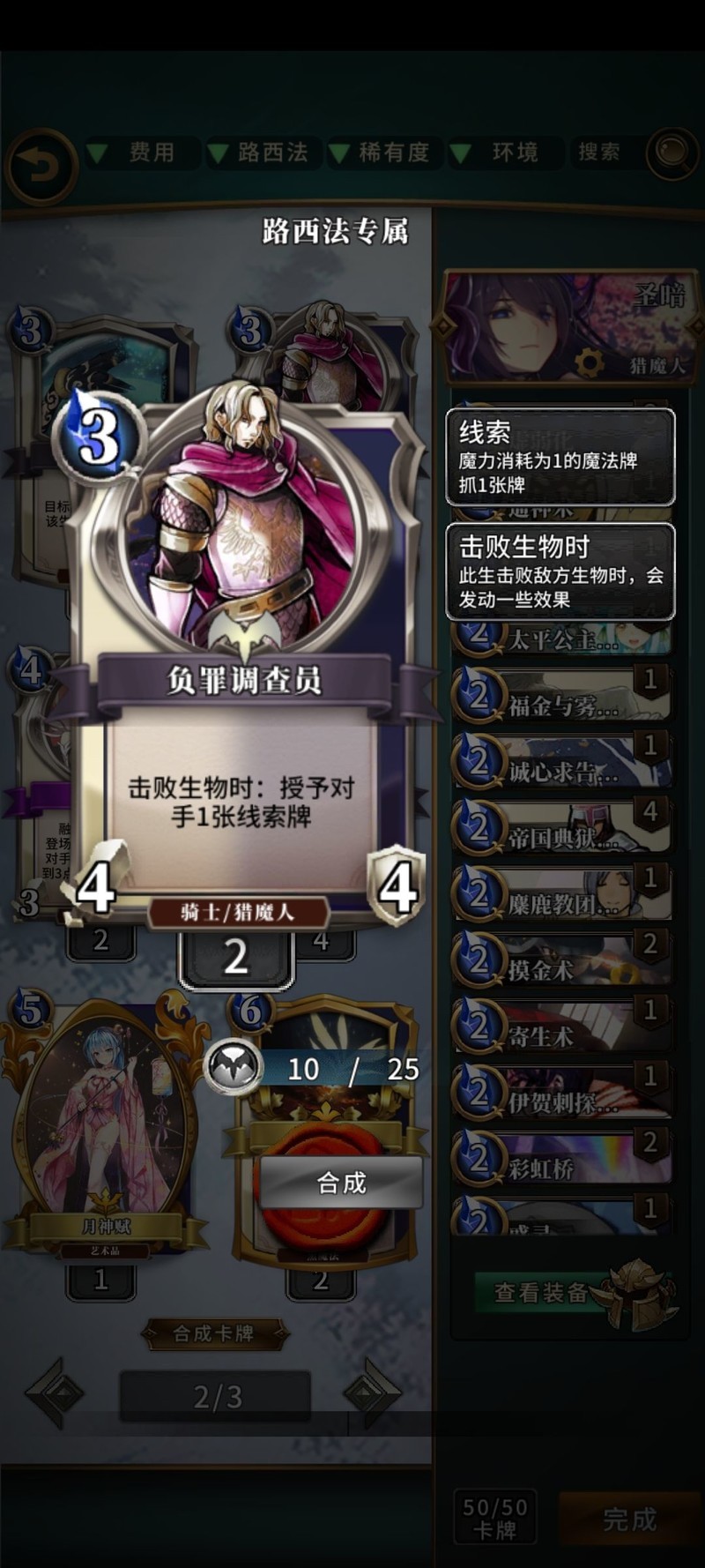 建议使用路西法,配合猎魔人与调查者使对手手牌超过三张,多携带低费回血卡牌,如英灵女仆和漆黑剑士。