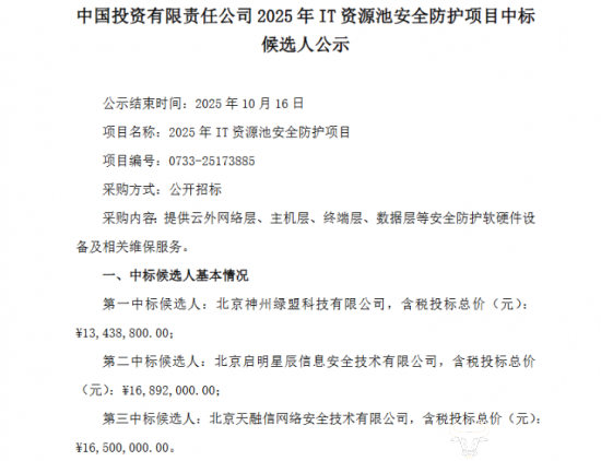 日前,中国投资有限责任公司公示“2025年IT资源池安全防护项目”中标候选人名单,中国移动旗下公司参与投标竟然落选,具体什么情况?